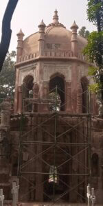 In 2024 Rosie added: ‘I did investigate the possibility of this being the tomb of a Dutch person. There were Dutch governors in Bengal in the 17th century but a Dutch historian I contacted thought none of them were of sufficient importance to have commissioned a tomb like this. We don’t know the names of the Dutch Governors and unless someone is prepared to research the records of the Dutch East India Company in the Hague, we will probably never know. So my only reason for suggesting Dutch influence is the Dutch tombs at Surat’.