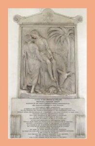 In the Regency period, Michael Cheese was the Company surgeon of what was then Calcutta, and garrison surgeon of Fort William, the city’s East India Company military base. He left for India as an assistant surgeon in 1792 and was promoted to surgeon in 1806, working in the senior post for ten years. Calcutta was the British administrative capital until 1912. Mr. Cheese’s monument is inside the church on the wall of the south aisle. It was paid for by the people of Calcutta and carved in London by the sculptor Richard Westmacott.